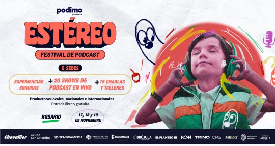Del 17 al 19 de noviembre llega a Rosario el primer festival de podcast «Estéreo», que se desarrollará en cinco sedes con la participación de más de veinte productoras locales, nacionales e internacionales; habrá conversatorios, talleres y muestras de podcasts y experiencias sonoras en vivo.